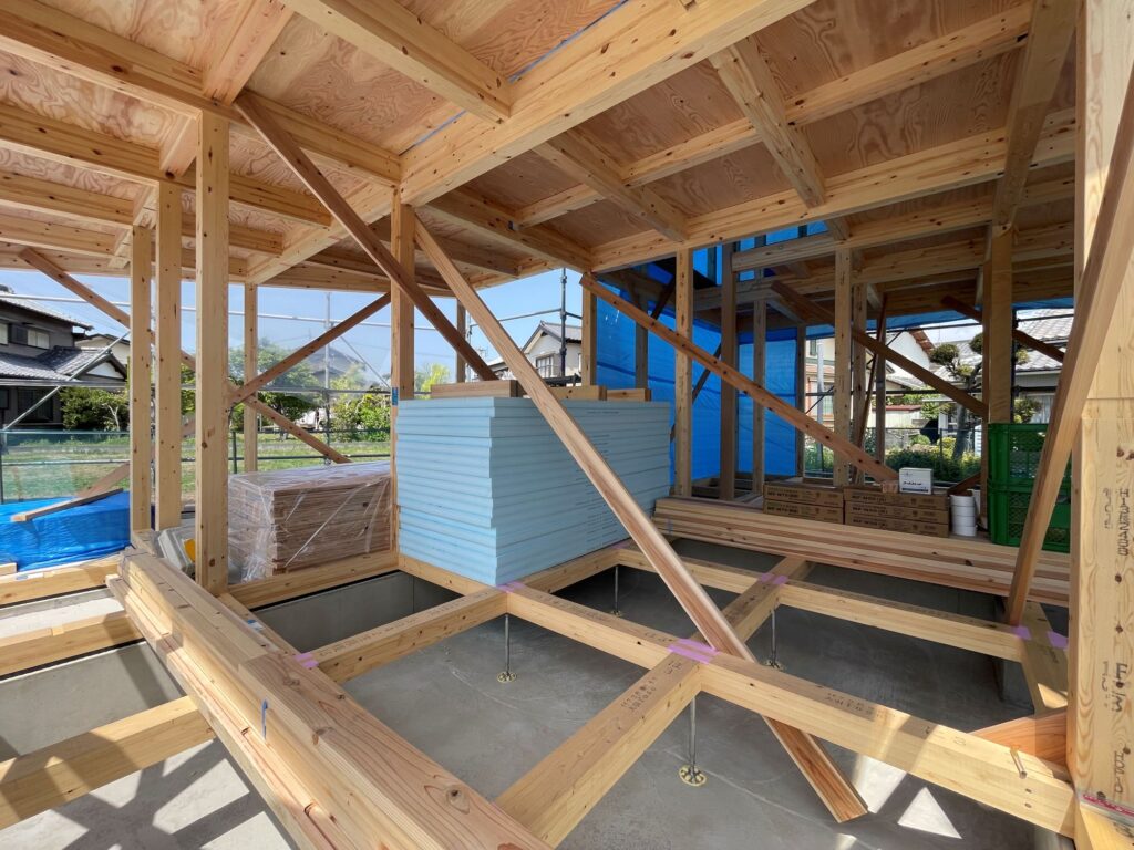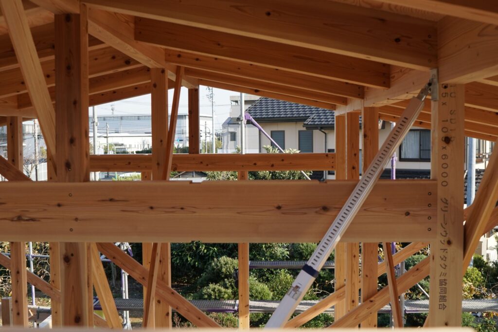 一方、集成材は小さく加工した木材を再構成したもので、強度が安定し、反りや割れが起きにくいのが特徴です。aisuの家では、性能が数値で裏づけられる「機械等級」のJAS材を標準仕様とし、構造の信頼性を確保しています。