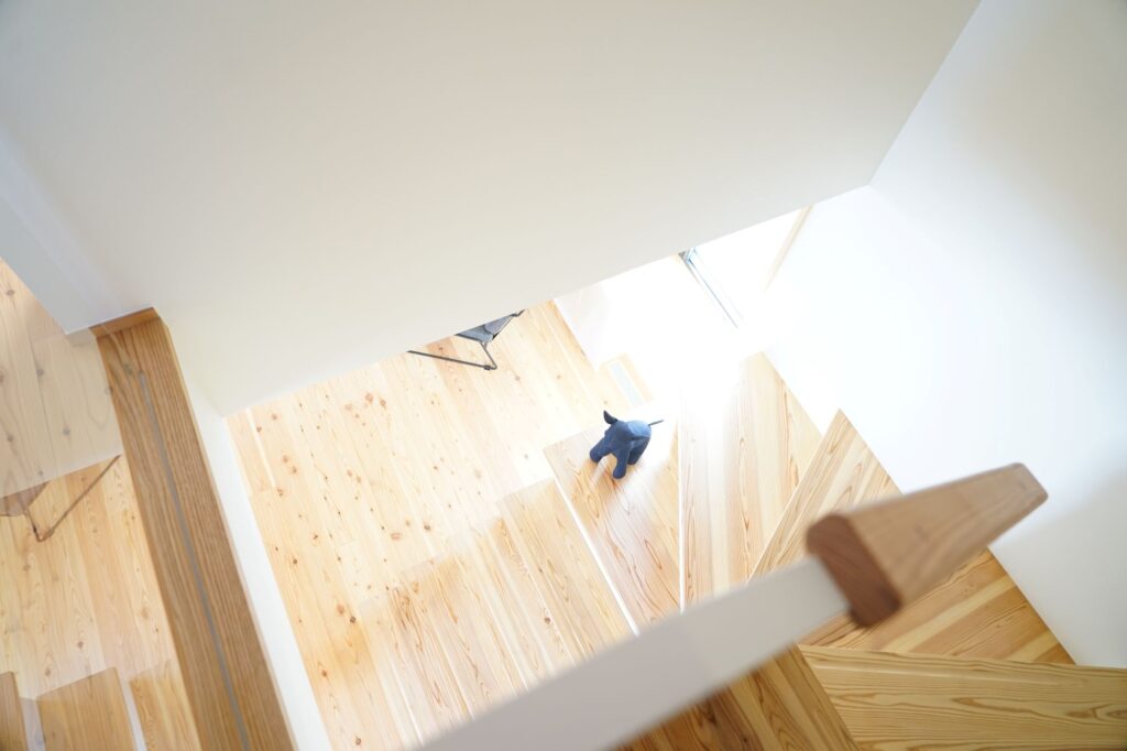 もちろん、2階へと上がる階段の位置や高さの工夫も大切です。1階と2階を自然につなげながら、日々の動きをできるだけ心地よく整えていきます。このような小さな工夫でも、暮らしは大きく変わるものです。お風呂を2階に。その一歩を踏み出すだけで、1階のリビングは驚くほど伸びやかになります。